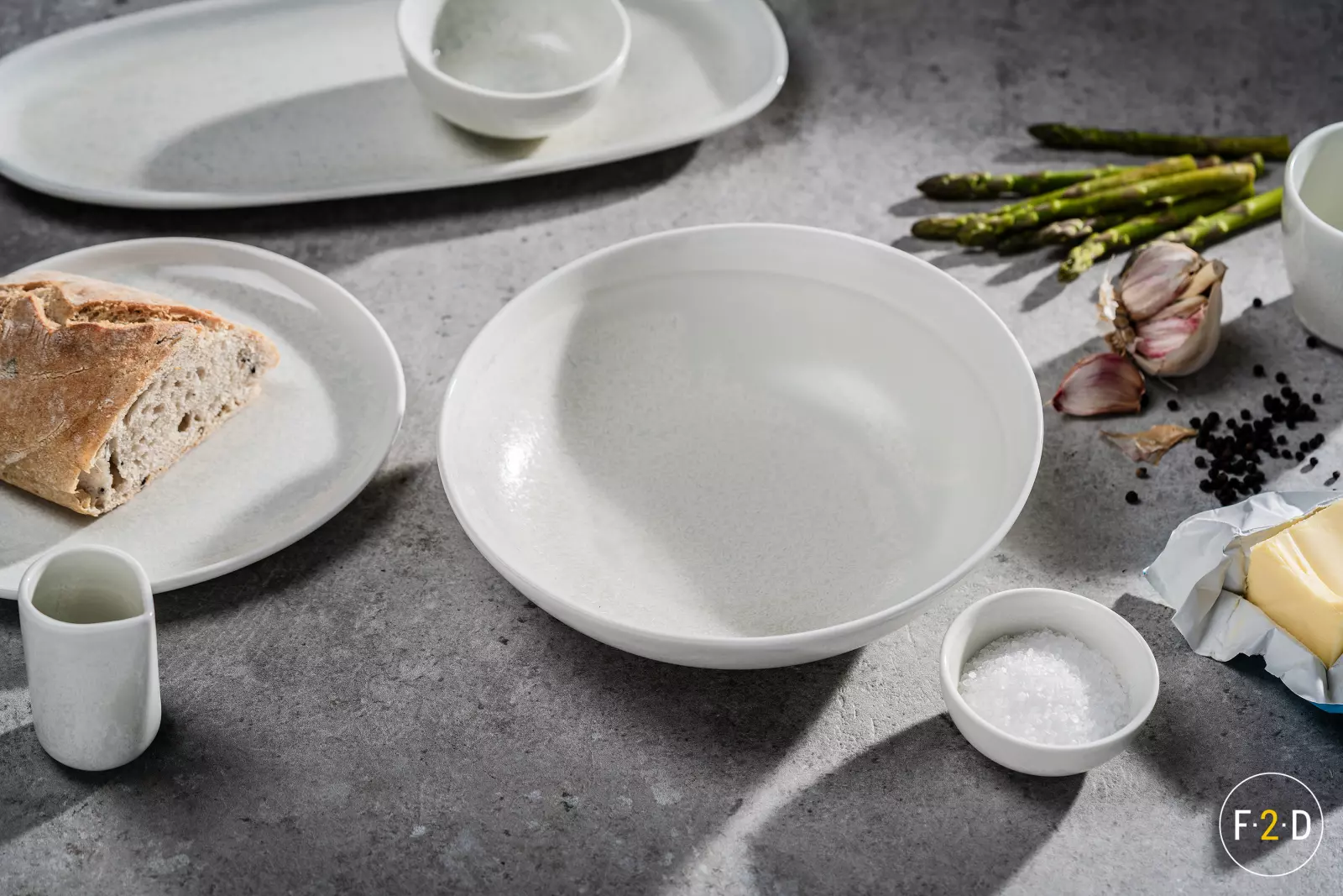 Vaisselle tendance (design,nature, effet métal-brut, couleurs)
