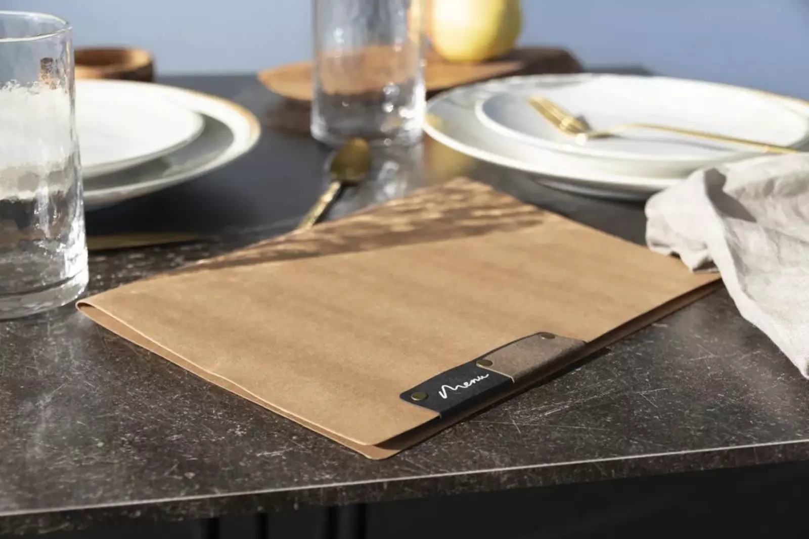 | Carte menu a4 noire en fibres naturelles | 191181 | 1 | 15,00 € |