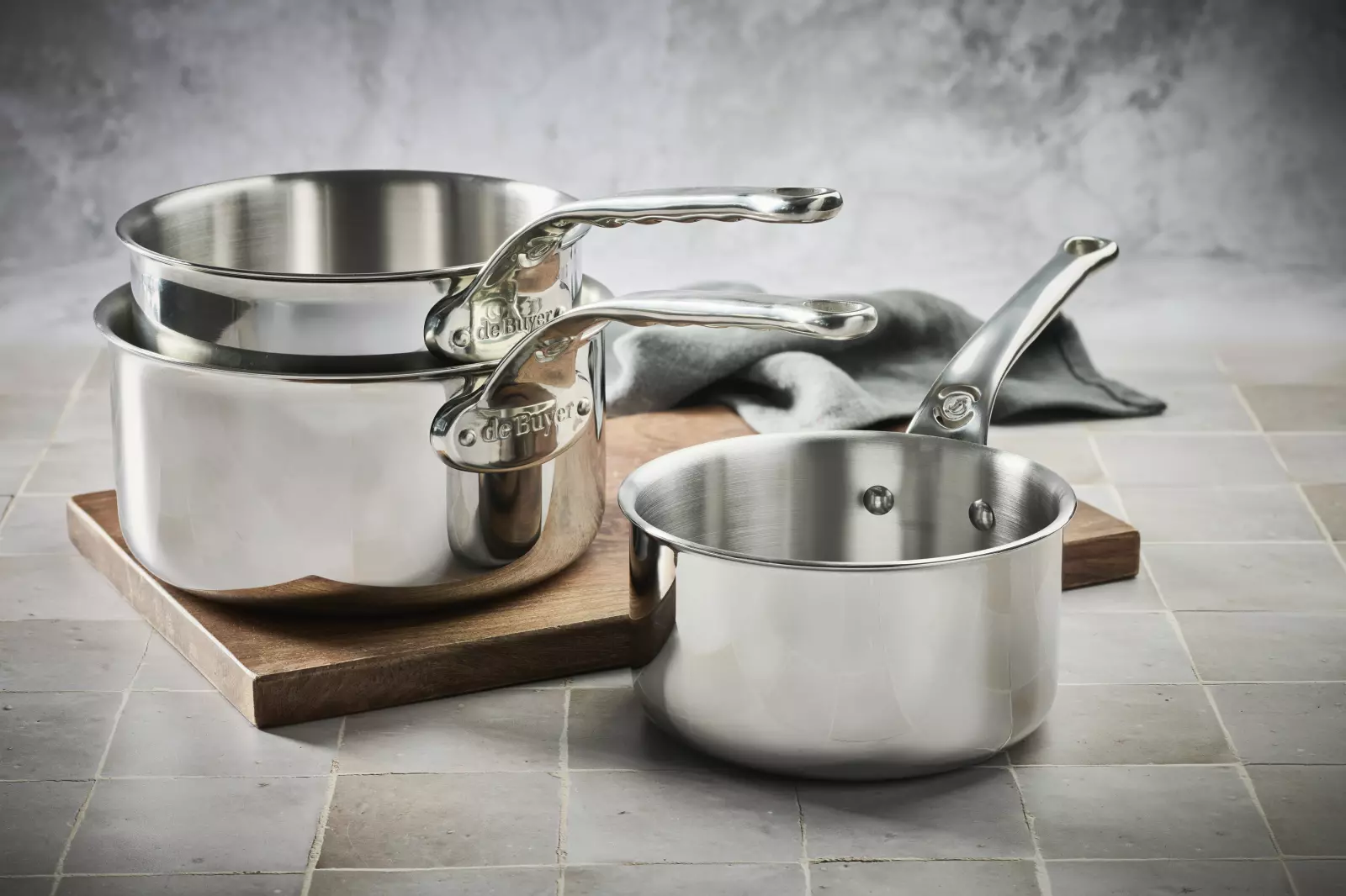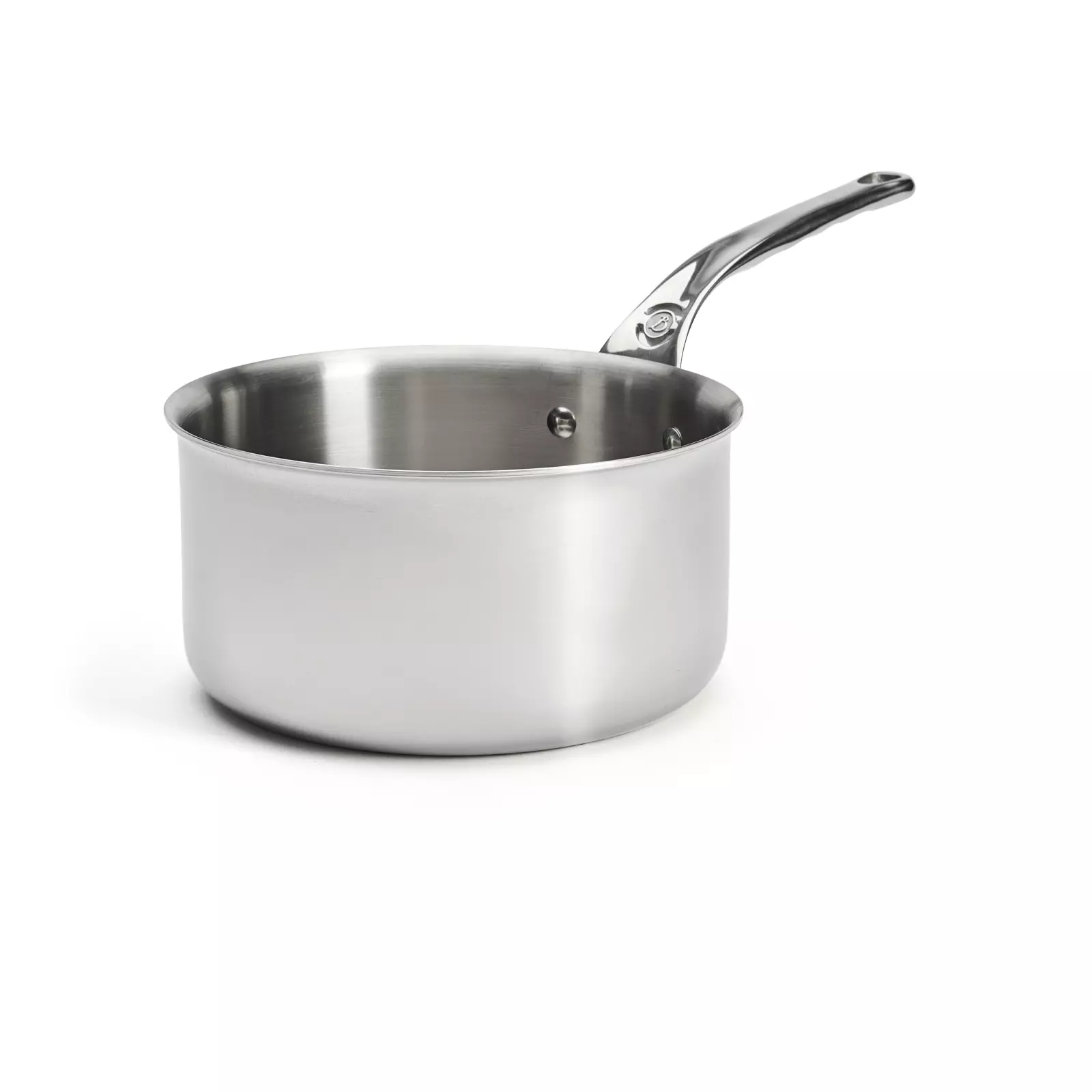Casserole en acier inoxydable multicouche : 5 couches(Inox Alu Inox) – Montures à la Française rivetées en fonte d’inox avec stop chaleur.Tous feux et four