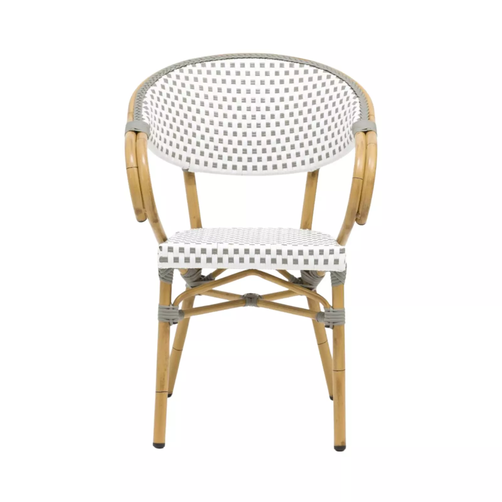 Fauteuil structure aluminium, assise et dossier tressage nylon gris et blanc.Caractéristiques :