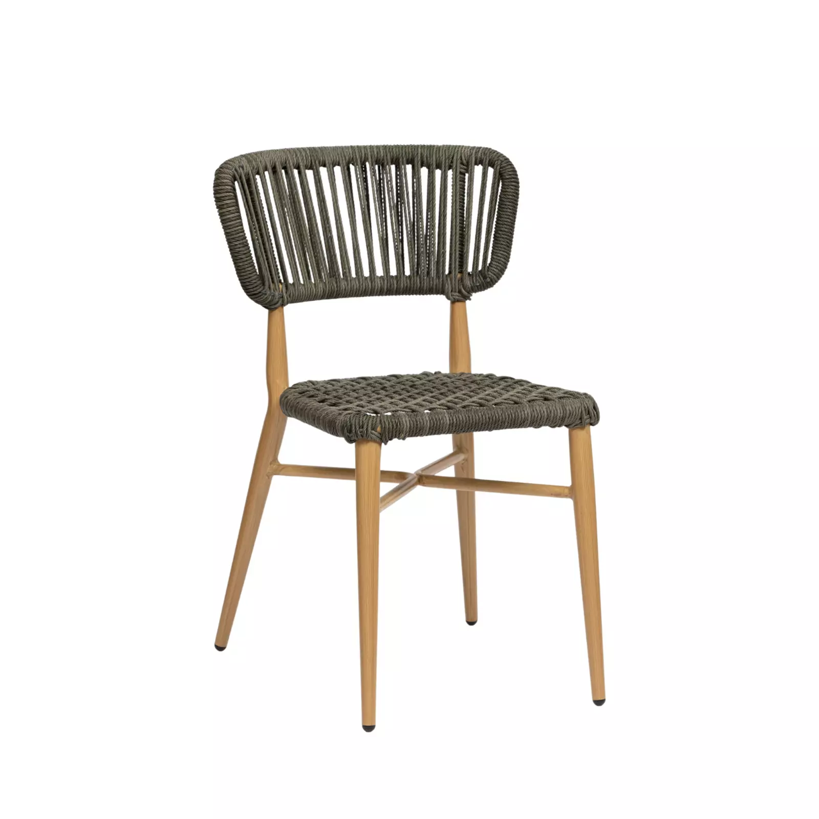 Chaise structure aluminium effet bamboo, assise et dossier corde polyester grise.Caractéristiques :