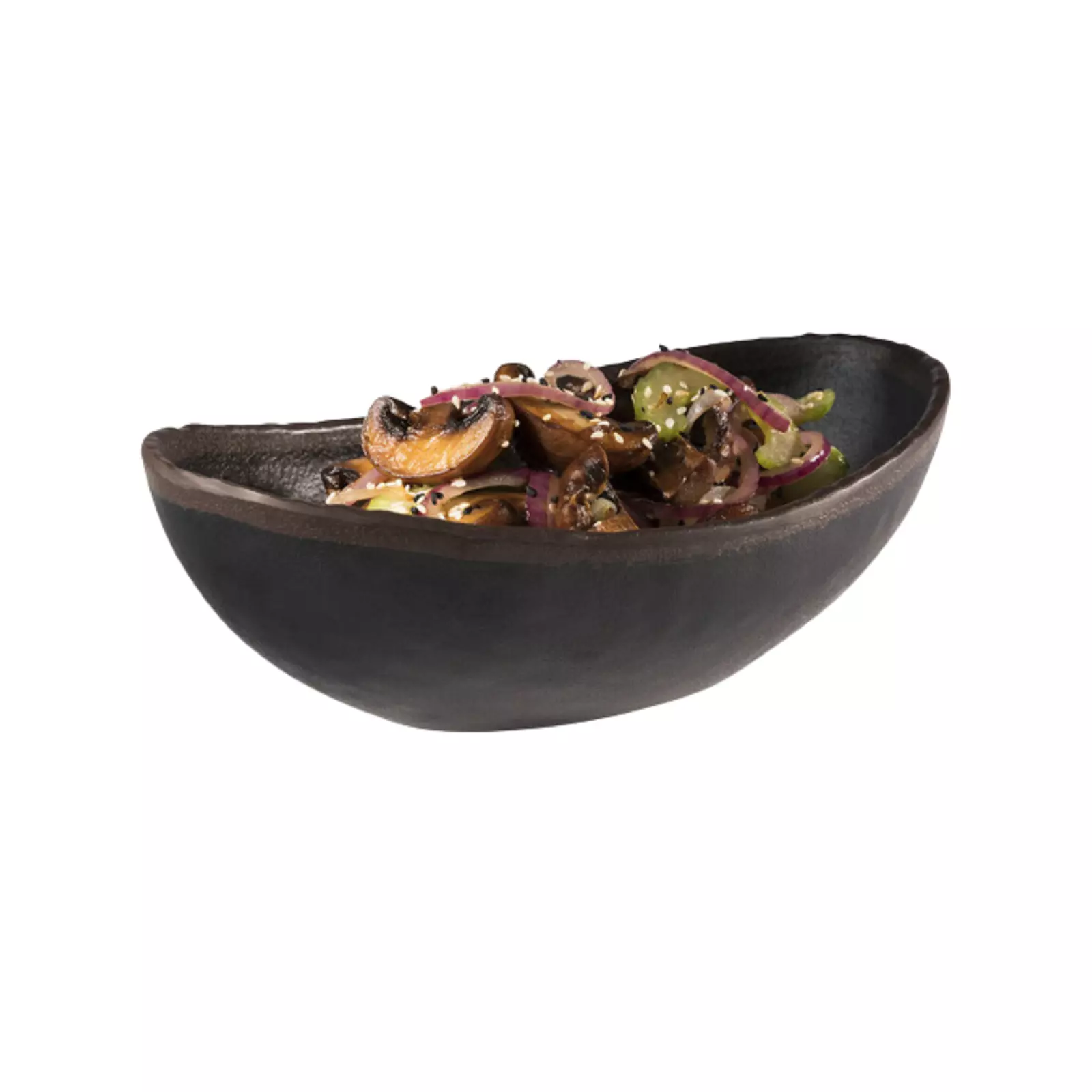 Formes organiques à l’apparence proche du naturel, mélamine couleur noire avec rebords marron. Empilable – Passe au lave-vaisselle.Caractéristiques :