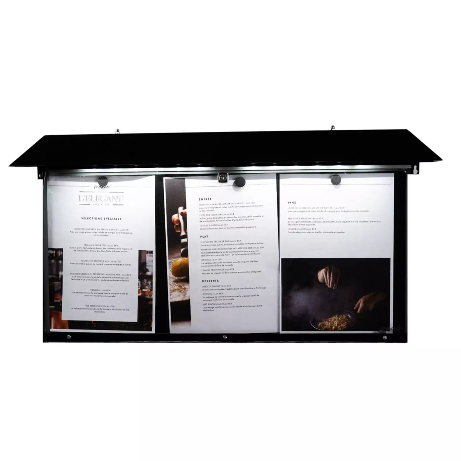 Usage intérieur & extérieur – Fermeture à clé – Lumineux – Autres couleurs et polices possibles (nous consulter) – MétalCaractéristiques :