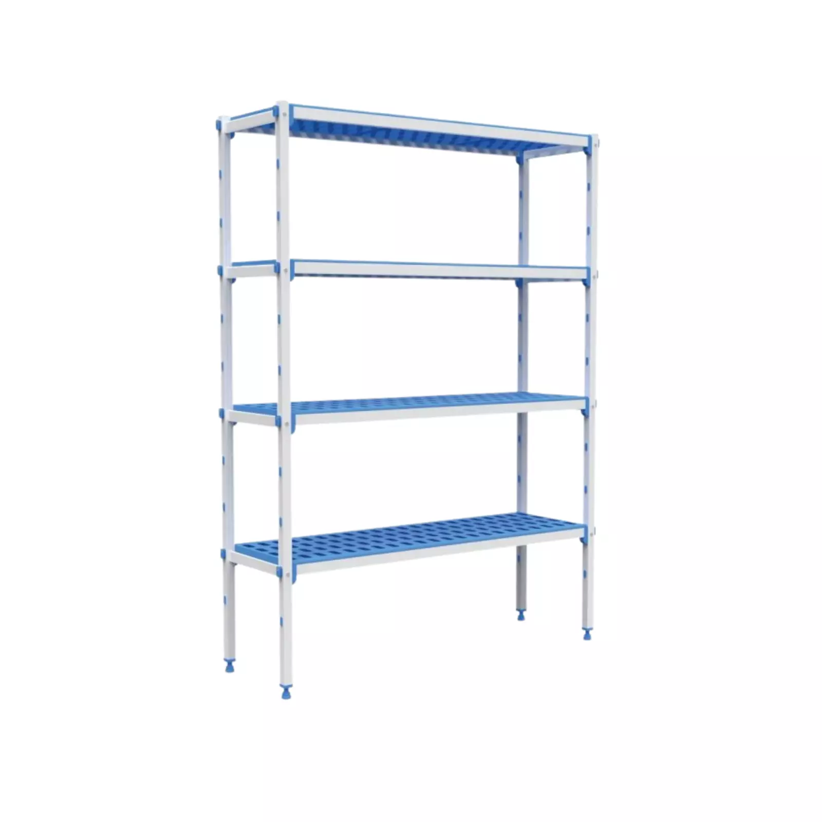 Rayonnage 4 niveaux – Structure aluminium anodisé – Clayettes amovibles en polyéthylène alimentaireCaractéristiques :