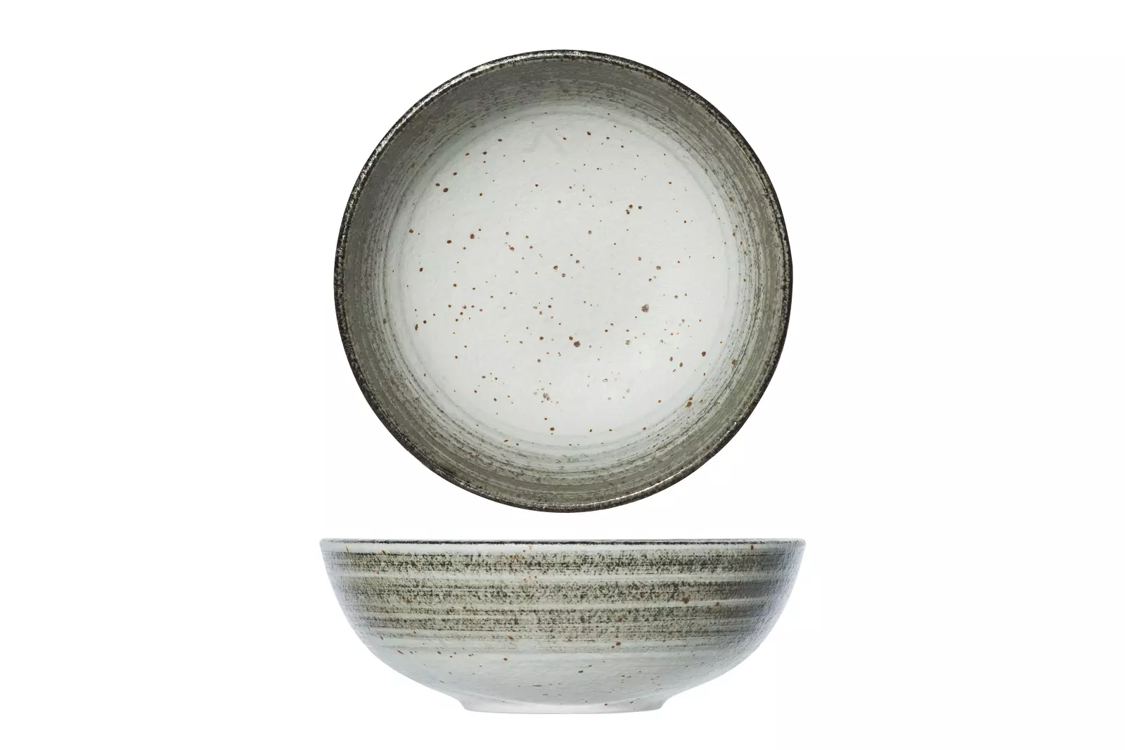 Splendido est une série de service fabriquée en grès dont surtout la surface rugueuse et granuleuse se fait remarquer.Les cercles concentriques plus foncés vers les bords et plus clairs vers le centre.