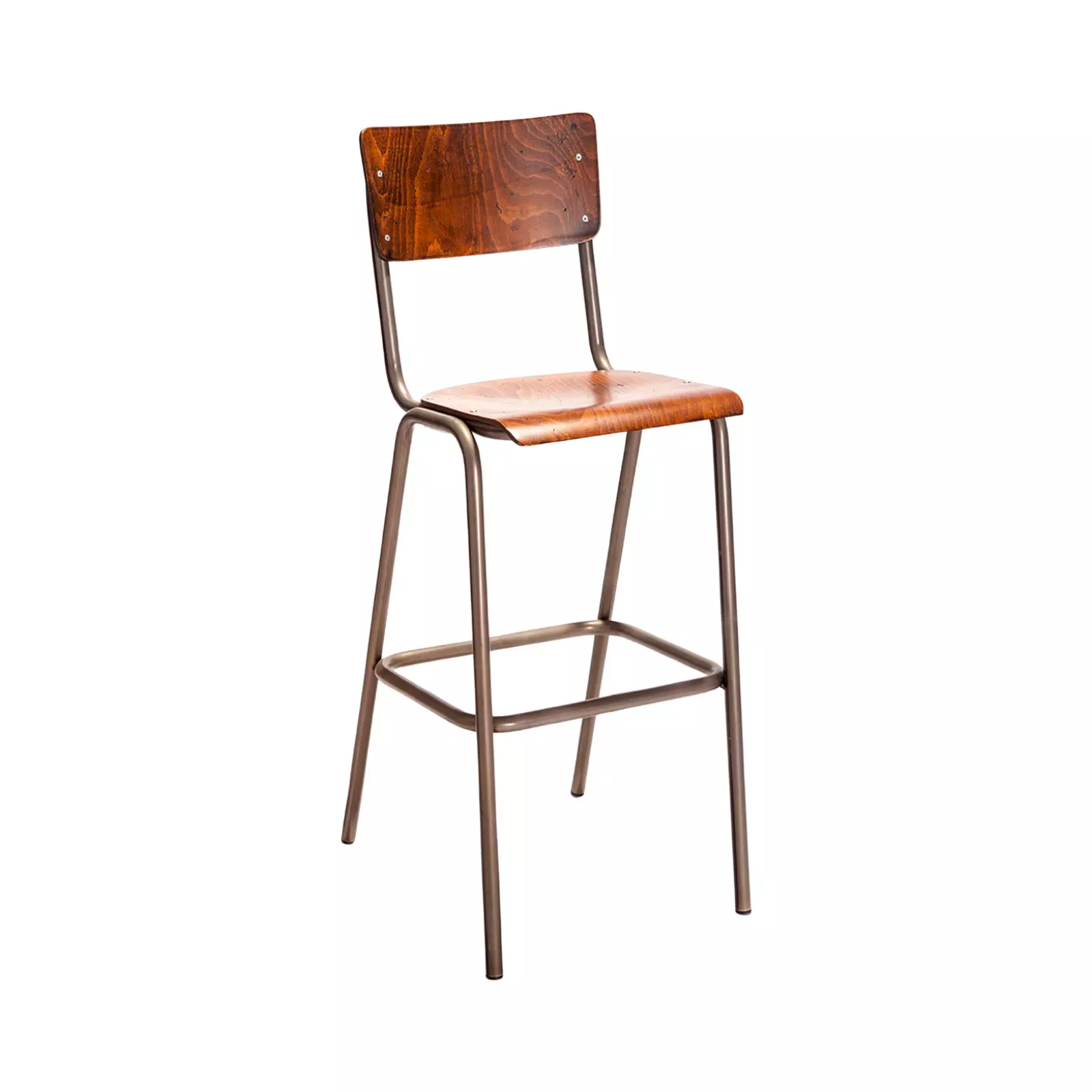 Tabouret structure en acier verni brut, dossier et assise en hêtre plaqué.Caractéristiques :